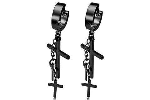 3つの十字架チャームを長さの異なるチェーンでつなげたヴィジュアル系フープピアス。