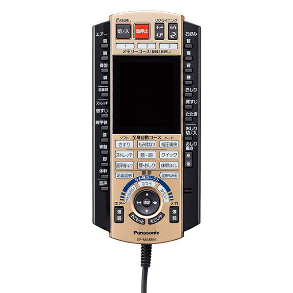 【搭載機能】●モミメカ:ヒューマンハンドモミメカ / ヒューマンサスペンション制御 / もみ味セレクト●揉ねつ:上半身揉ねつ / 足裏揉ねつ / おしり揉ねつ●ストレッチ:首すじまわりストレッチ / 肩甲骨まわりストレッチ / 骨盤まわりストレッチ / 脚まわりストレッチ / 腰まわりストレッチ / 体幹ストレッチ●マッサージ:つつみ込みハンドマッサージ【上半身マッサージ】●施療範囲(上下方向):約79cm(もみ玉移動距離約63cm)●施療範囲(左右方向):《もみ動作時のもみ玉間隔(もみ玉の幅含む)》首・肩・背 約5cm〜約21cm、腰・臀部 約5cm〜約25cm 《背すじのばし、上下移動時のもみ玉間隔(もみ玉の幅含む)》約5cm〜約17cm●施療範囲(前後方向):もみ玉の突出量(強弱調節)約10cm●マッサージ速さ:《もみ》約4回/分〜約73回/分、《たたき》約190回/分〜約520回/分(片側)、《移動速さ》約1cm/秒〜約5cm/秒【その他仕様】●自動コース:さすりコース、もみ揉ねつコース、指圧痛快コース、ストレッチコース、首・肩コース、腰・おしりコース、クイックコース、体幹ほぐしコース、肩甲骨キワコース●エアーマッサージ:エアー圧力《ふくらはぎ》3…約35kPa 2…約32kPa 1…約17kPa(部位によって若干の違いがあります。