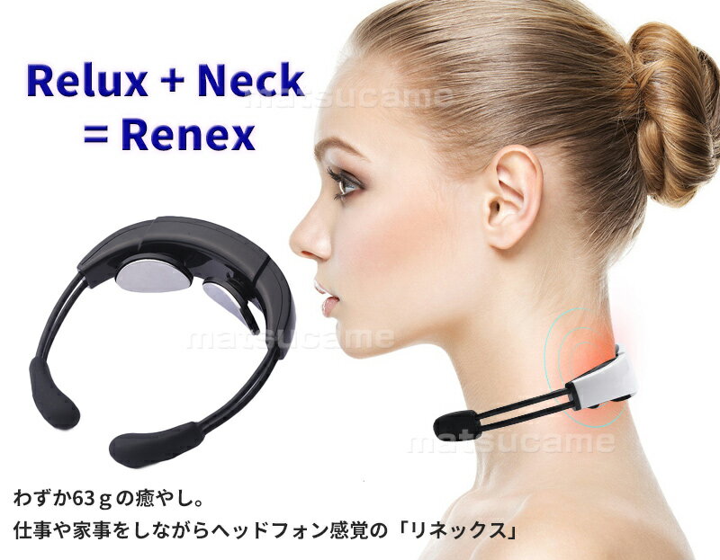 リネックス Renex首マッサージ器 マッサージ 電気刺激 ヘッドフォン感覚のリラクゼーションアイテム ながらマッサージ 「リネックス」は首の形にフィットするようにエルゴミクスデザインで設計されています。