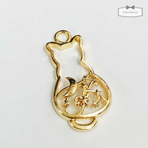 【空枠】星空にゃんこ 《きれいめゴールド》【猫 ねこ cat にゃんこ ニャンコ 動物 animal 夜空 星 ほし スター 月 つき ムーン ビーズアンドパーツ アクセサリーパーツ】